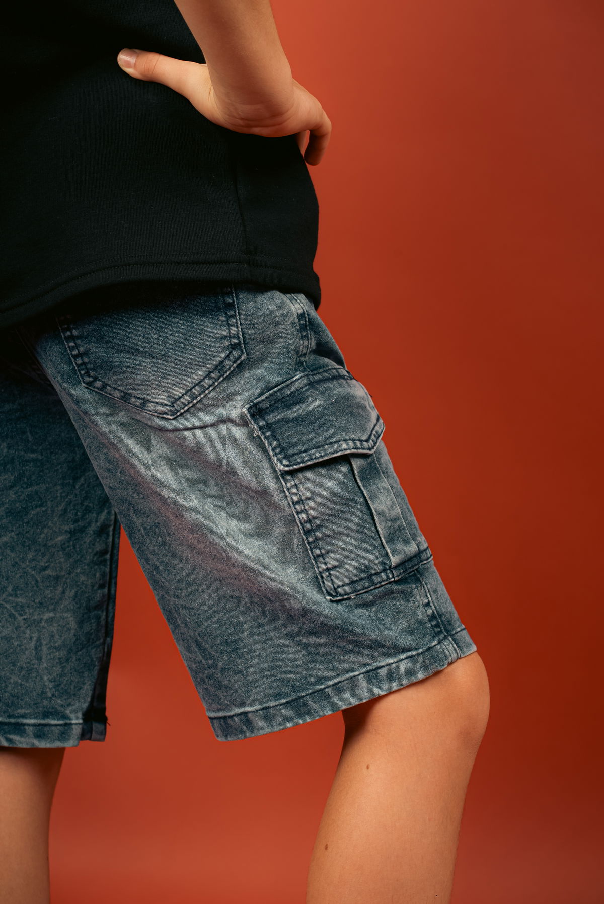 Bermuda infantil de denim con bolsillos cargo. Corte cómodo y moderno, ideal para uso diario y looks urbanos. Prenda resistente y fácil de combinar con remeras o musculosas.