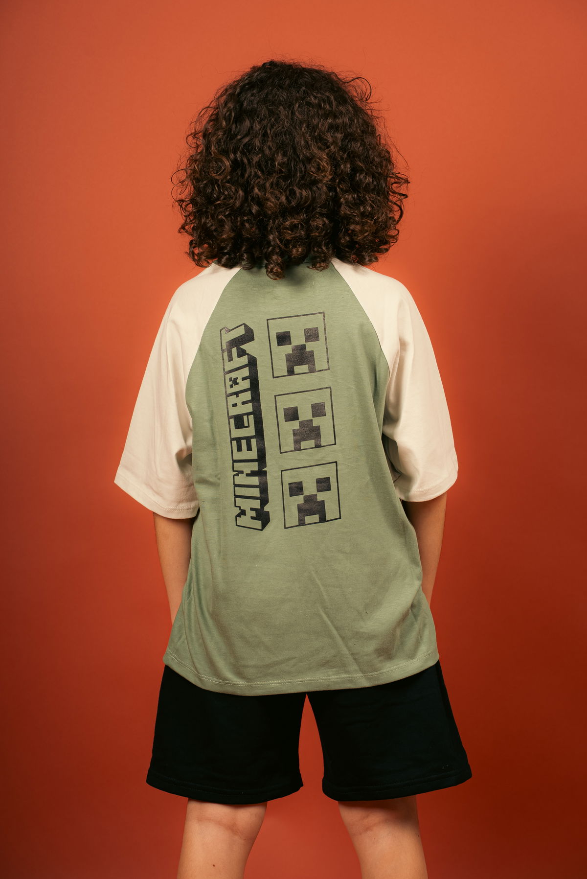 CONJUNTO CON REMERA MINECRAFT RANGLAN + SHORT DE RUSTICO LIVIANO